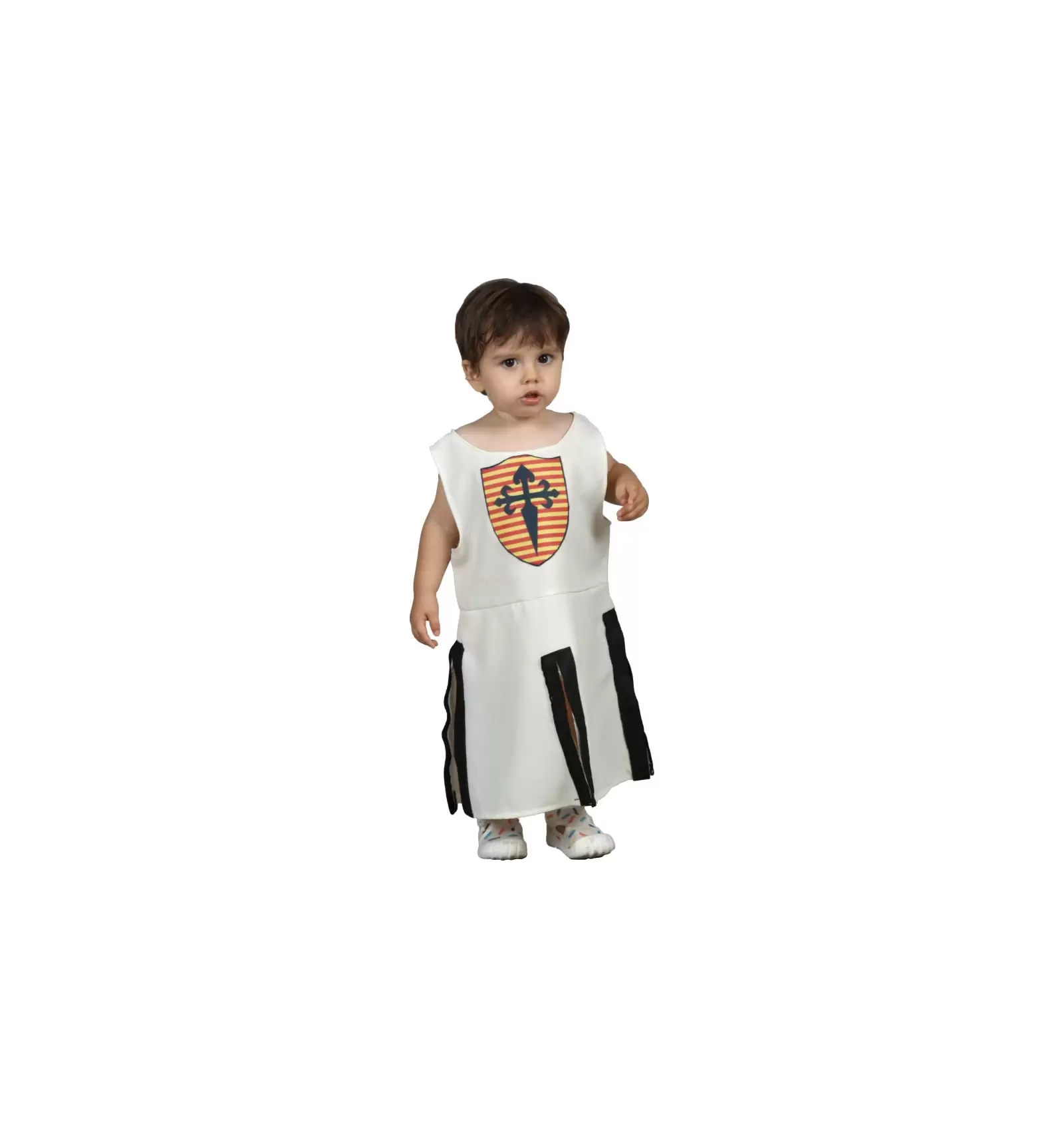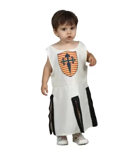 Esta sobrevesta de guerrero para bebé se encuentra disponible en tallas 24 y 36 meses, y será un original disfraz para que tu pequeño se divierta en el día de carnaval o en tu próxima fiesta medieval.