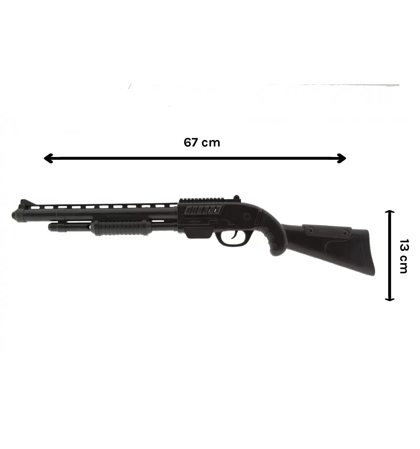 Tamaño de la escopeta: 67 centímetros de largo por 13 de ancho.