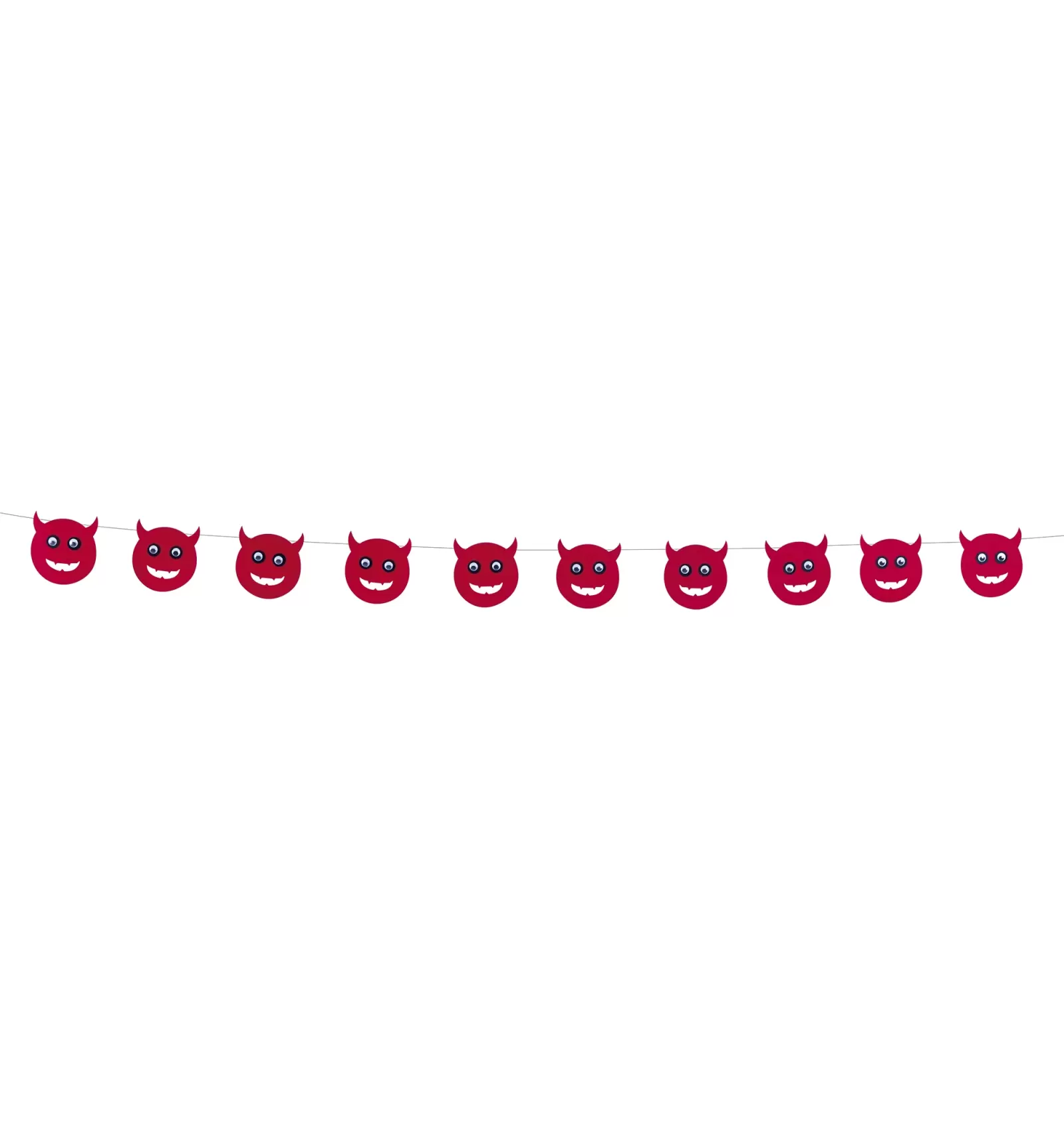 El producto incluye guirnalda de diablos con ojos móviles de fieltro.