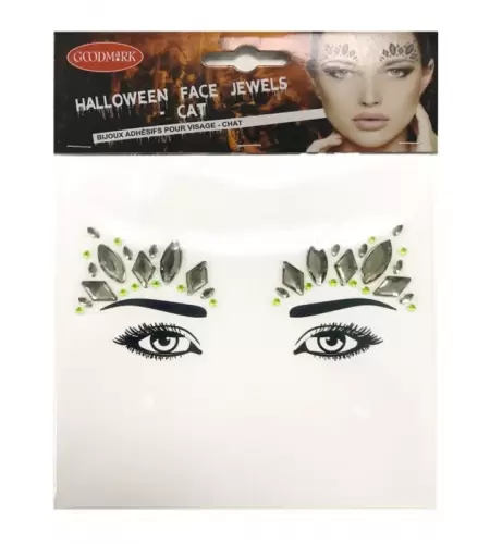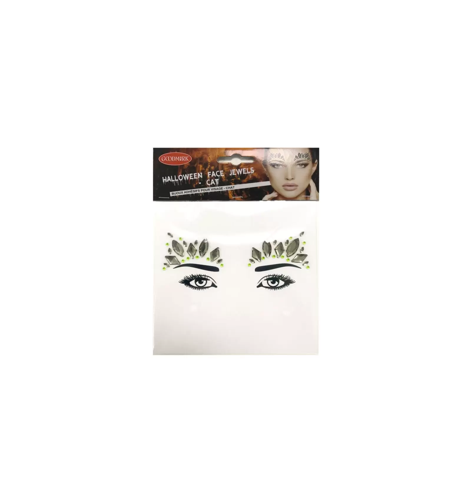 El producto contiene: Set de piedras auto-adhesivas para la cara, con diseño de gato.