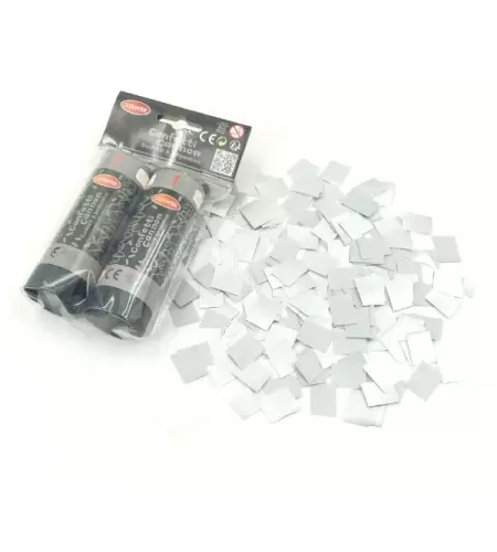 El producto contiene: cañón de confetti color plata con una medida de 11cm y 2-2,5 gramos de papel.