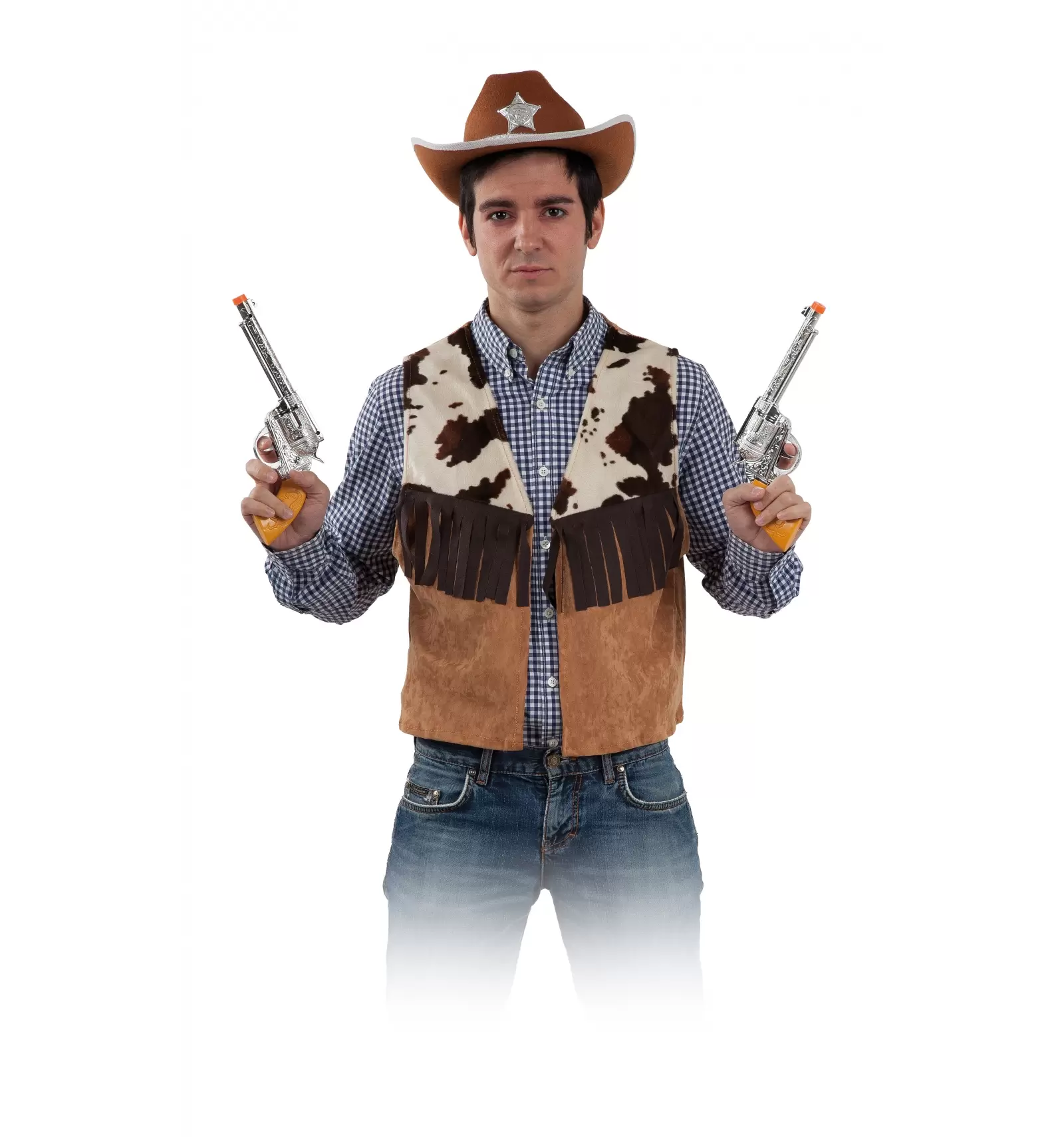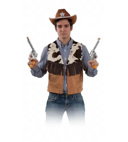 El producto contiene: Chaleco decorado con flecos. Disponible en un solo tamaño para adulto. Confeccionado en diferentes telas con estampados. Si buscas un disfraz de vaquero completo para ti o una pareja de vaqueros para tus hijos...