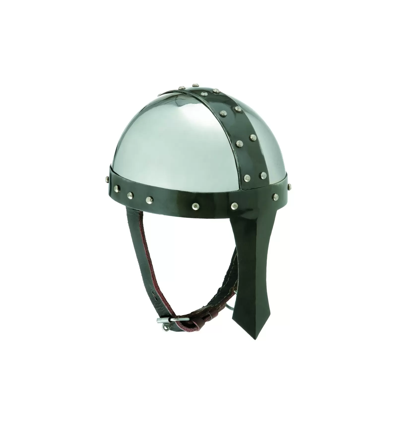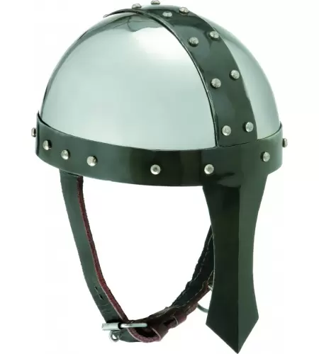 El producto contiene: Yelmo de metal con protecciones en el interior y cinta para sujetarlo a la cabeza.
