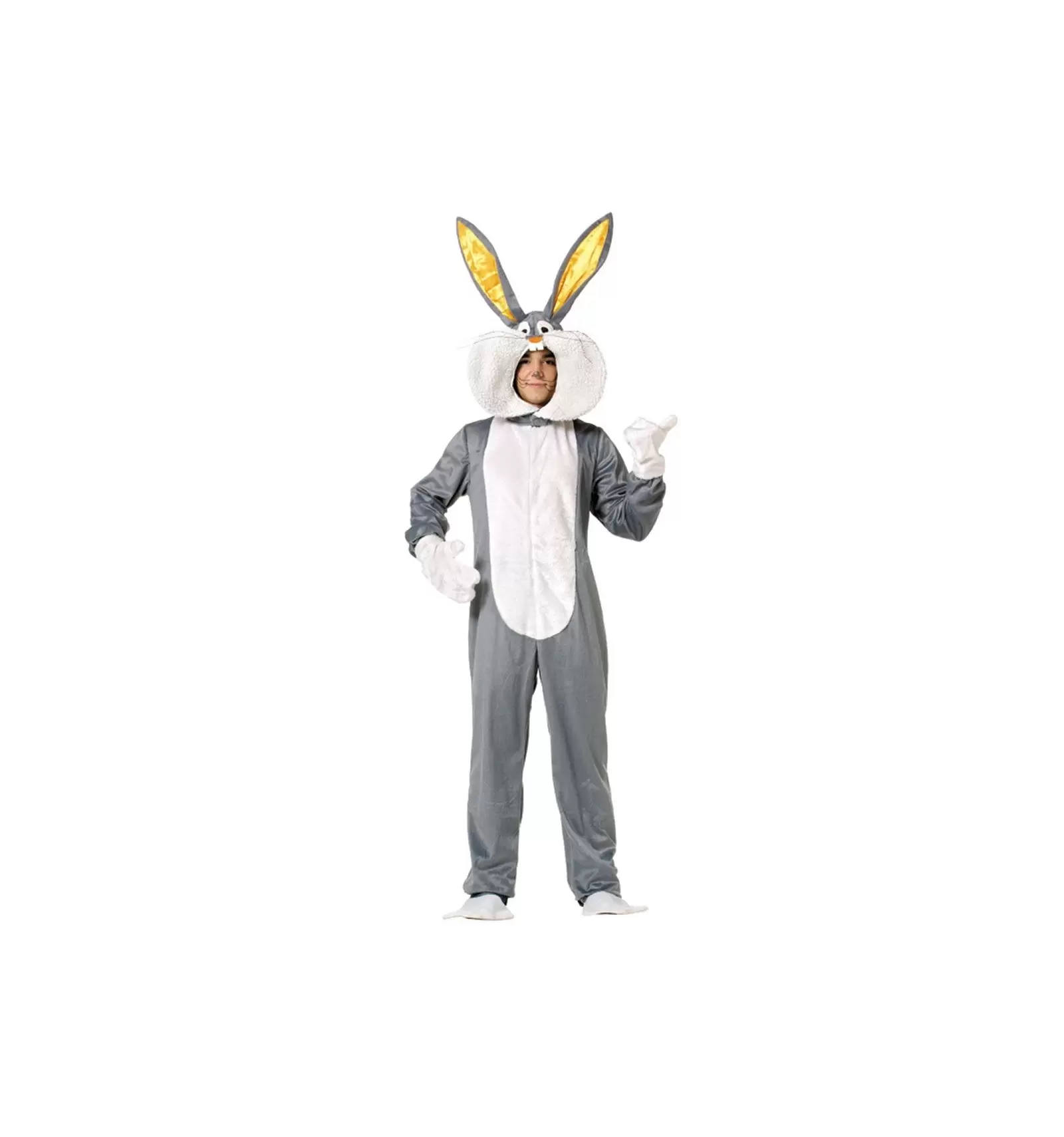 LE DÉGUISEMENT DE LAPIN EXISTE EN TAILLES 38-42 POUR FEMMMES ET 52-56 POUR HOMMES. IL COMPREND LA COMBINAISON AVEC SURBOTTES, LA TÊTE ET LES GANTS.