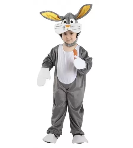 Déguisement de lapin pour enfants disponible en 2, 4, 6 et 8 ans, et qui comprend la combinaison et la cagoule.