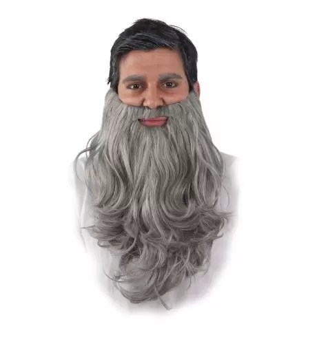 Barbe de couleur gris, noir ou blanc, fabriquée avec des fibres synthétiques et en taille unique pour adultes.