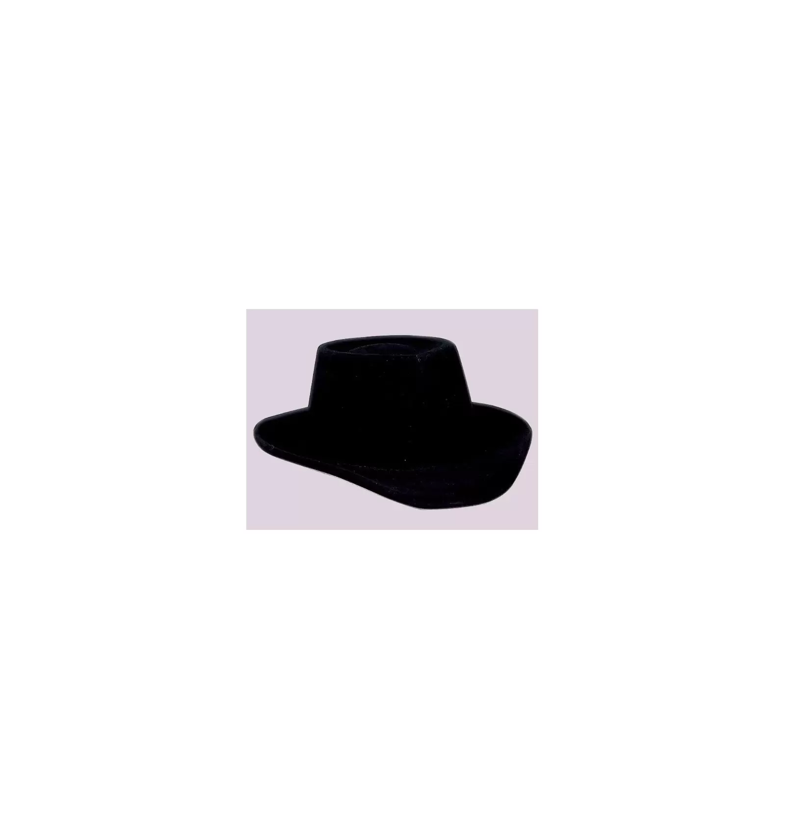 LE CHAPEAU DE COW BOY EST FABRIQUÉ EN PLASTIQUE FLOQUÉ (ASPECT VELOURS) ET TAILLE UNIQUE.