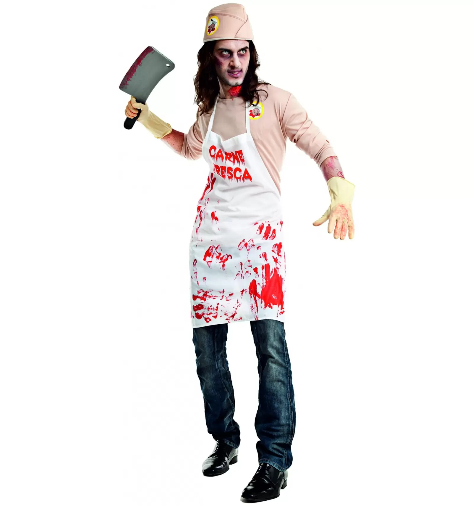 Déguisement de boucher assassin disponible en S et M/L qui comprend : la chemise, le tablier, les gants et la coiffe.