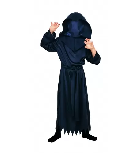 Déguisement disponible en plusieurs tailles et qui comprend : la tunique, la ceinture et la capuche.