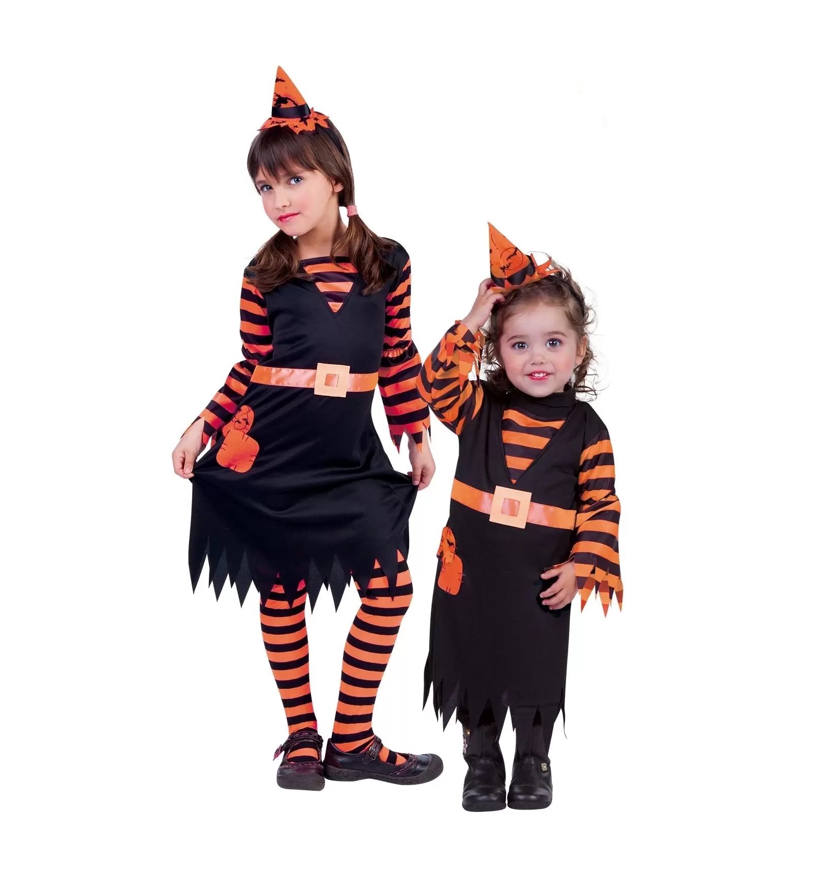 DÉGUISEMENT DE SORCIÈRE DISPONIBLE EN 4, 6 ET 10 ANS, ET QUI COMPREND LA ROBE ET LE CHAPEAU AVEC SERRE-TÊTE.