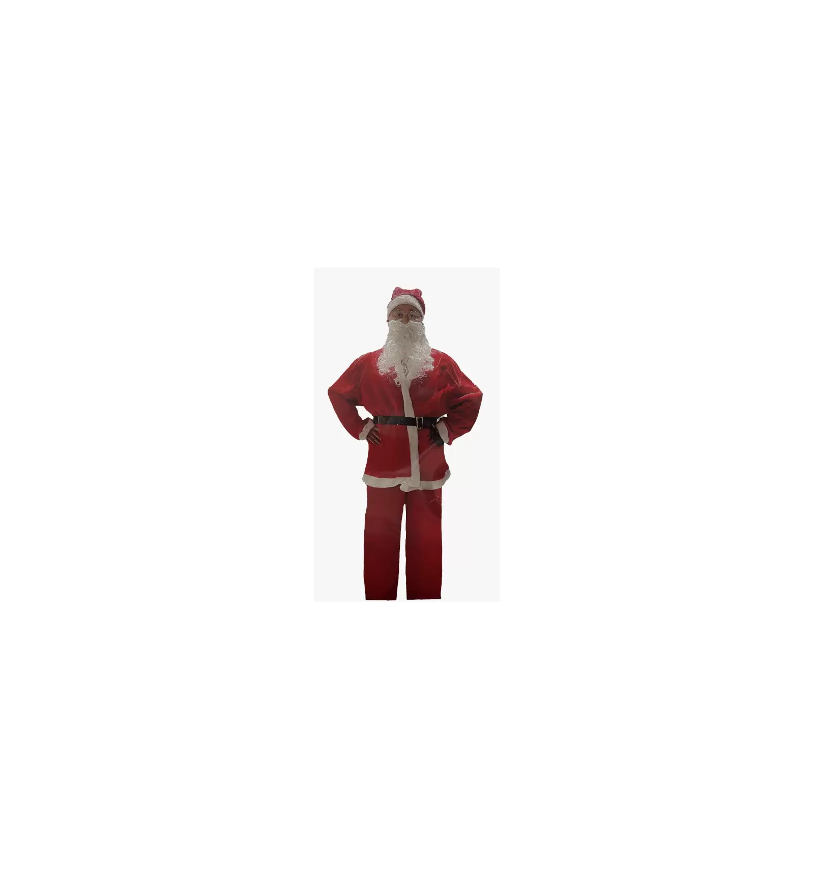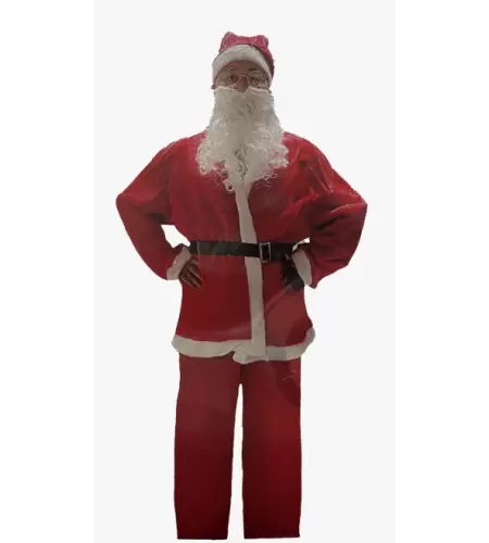 Tradicional disfraz de papa noel para pasar unas navidades perfectas. compuesto por pantalón, chaqueta, cinturón, sombrer y cubre botas.