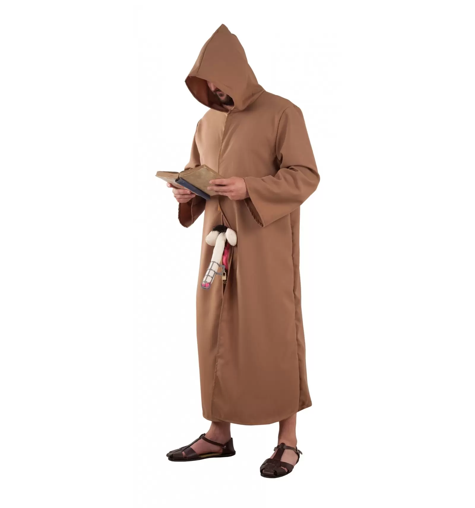 Déguisement sympathique de moine de chasteté pour adultes. Comprend la tunique et le sexe cadenassé.