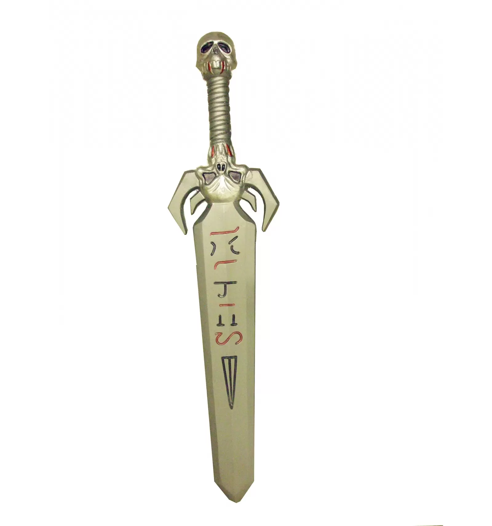FABRIQUÉE EN PLASTIQUE COULEUR GRISE ET DÉCORÉE. MESURE 68 CM. DE LONG ET LA LAME 8 CM. DE LARGE.