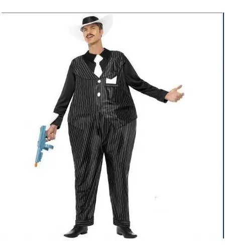 Déguisement de gangster XXL. Il comprend mono avec anneau, chapeau et cravate.