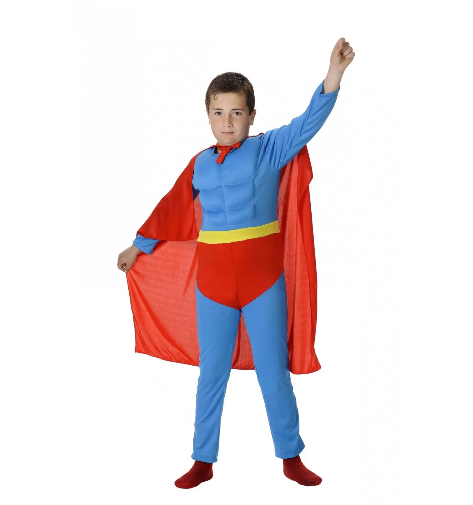 LE DÉGUISEMENT DE SUPERMAN EXISTE EN TAILLES 4, 6, 8 ET 12 ANS ET COMPREND LA COMBINAISON AVEC MUSCLES ET LA CAPE.