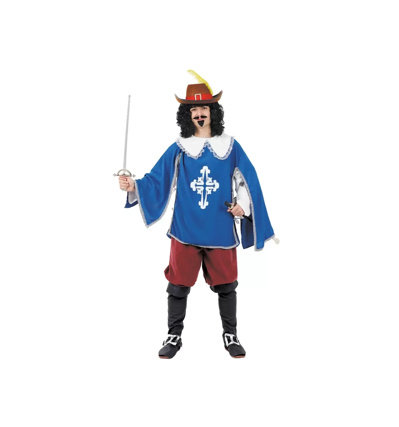LE DÉGUISEMENT DE MOUSQUETAIRE EXISTE EN TAILLE 52 ET COMPREND LE PANTALON, LES SURBOTTES ET LA CAPE.
