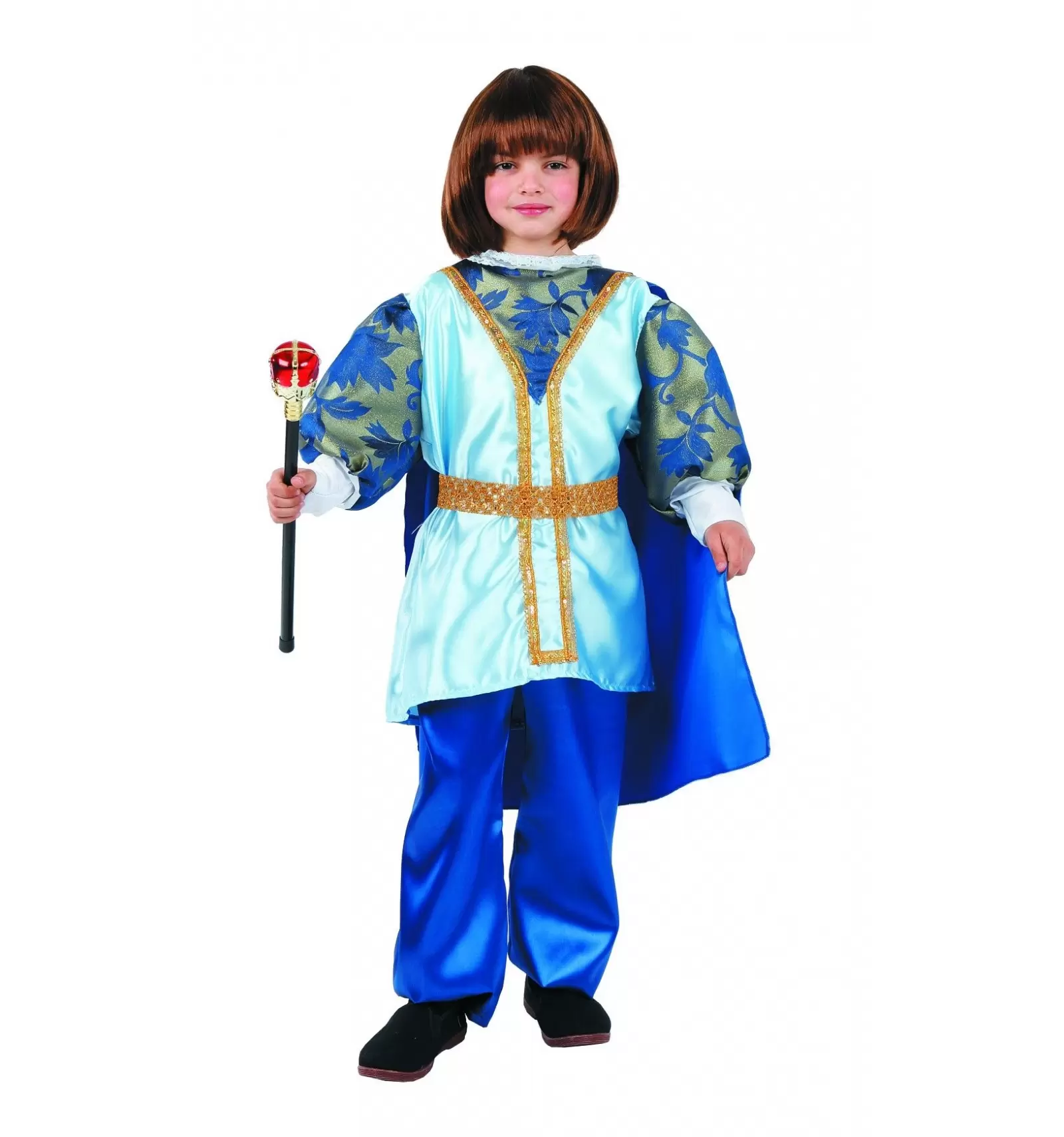 Déguisement roi de France enfant en tailles 2,4,6, 8 et 12 ans. Il comprend la chemise, la cape, ceinture et pantalon.