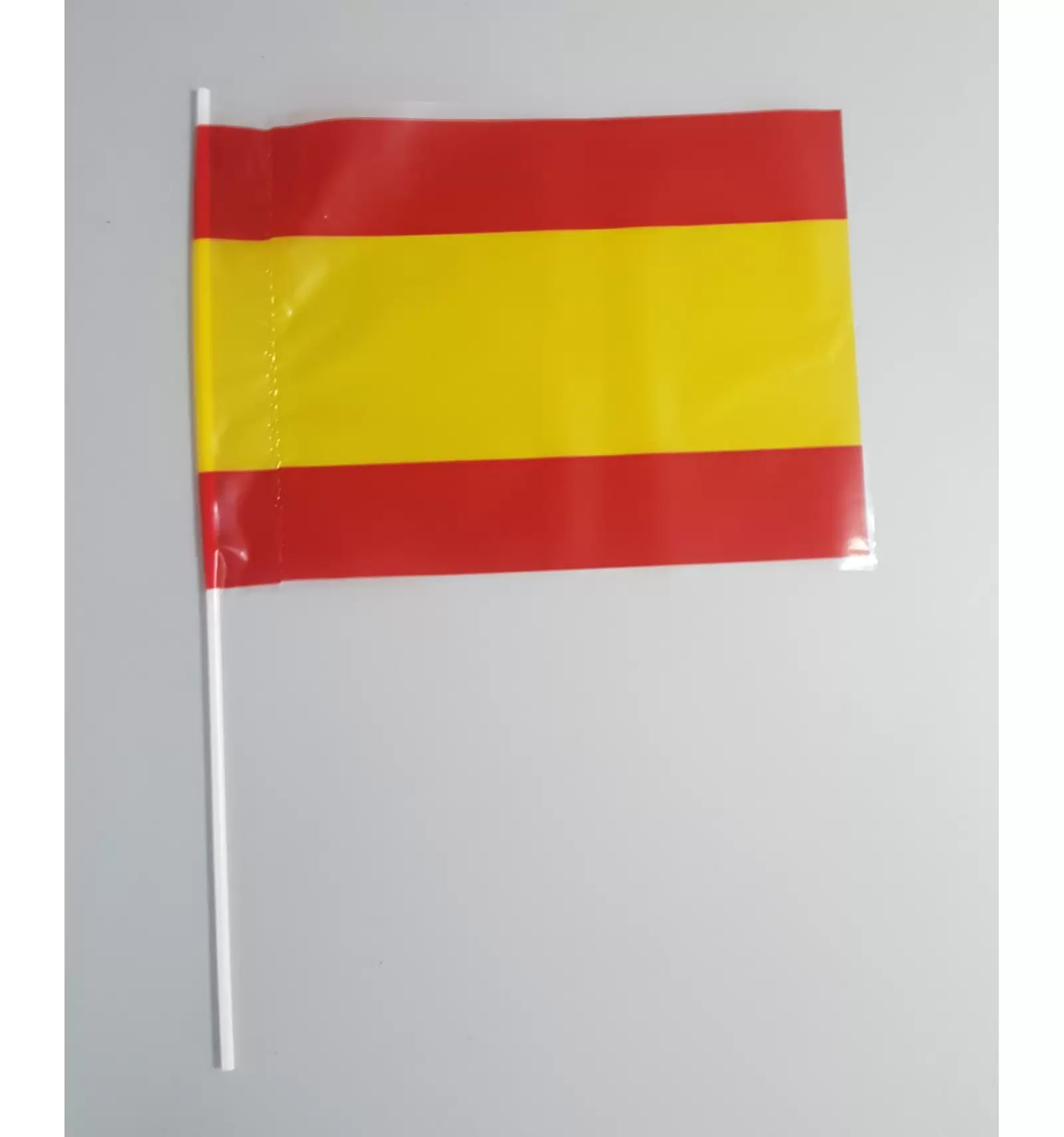 UN DRAPEAU L"ESPAGNE 20X30 UN CM. AVEC BÂTON DE PLASTIQUE. ILS SE VENDENT DANS DES PAQUETS DE 25 UNITÉS. LE PRIX QUI APPARAÎT EST PAR UNITÉ.