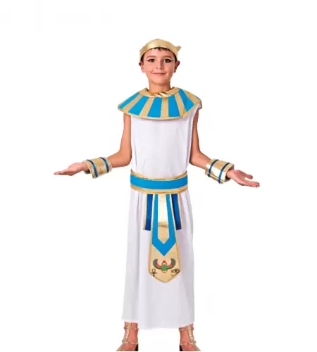 LE DÉGUISEMENT DE CLÉOPATRE ÉGYPTIENNE EXISTE EN TAILLE 44. IL COMPREND: LA TUNIQUE, LA JUPE, LA COIFFE, LA CEINTURE ET LA COLLERETTE. MESURES: LONGUEUR 140 CM, POITRINE 98 CM, MANCHE 65 CM ET HANCHES 100 CM.