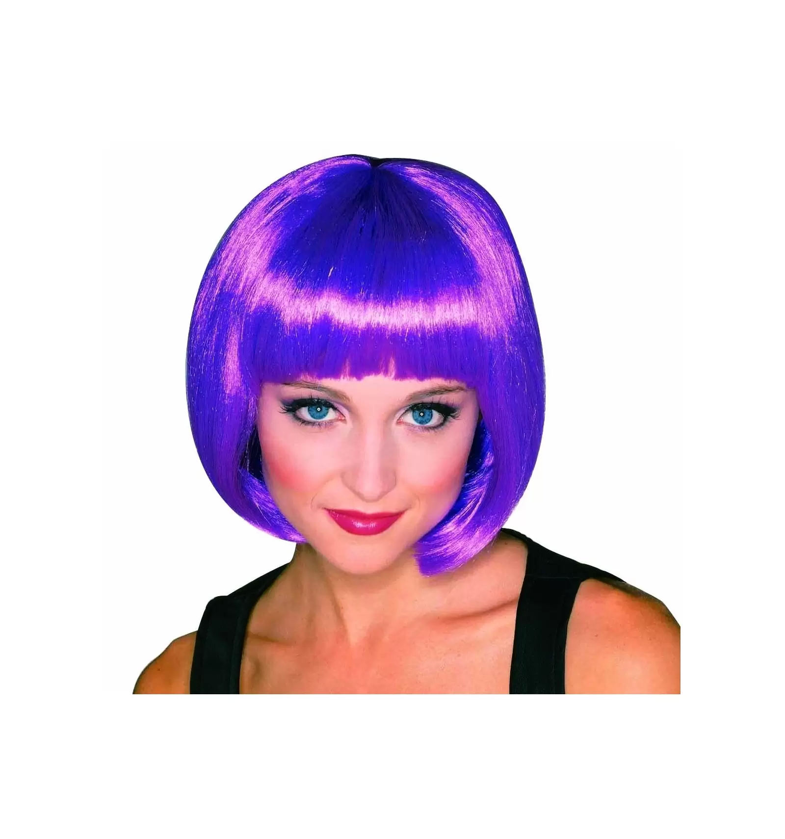 Perruque violet cheveleure courte fabriquée en fibres synthétiques et taille unique.