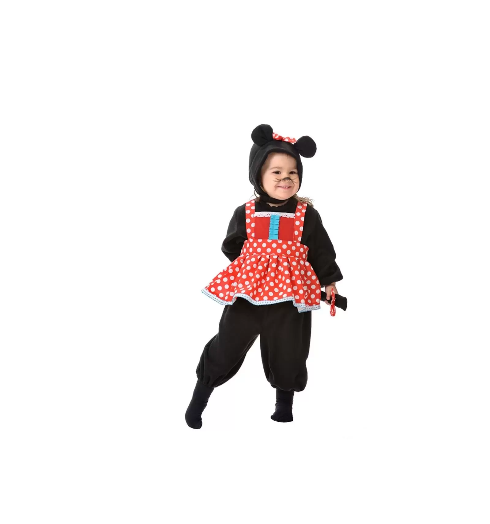 O EQUIPAMENTO DO BEBÊ RAT IS MADE EM VÁRIOS TAMANHOS E INCLUI AVENTAL MONO, E UM CHAPÉU COM ORELHAS E TIE.