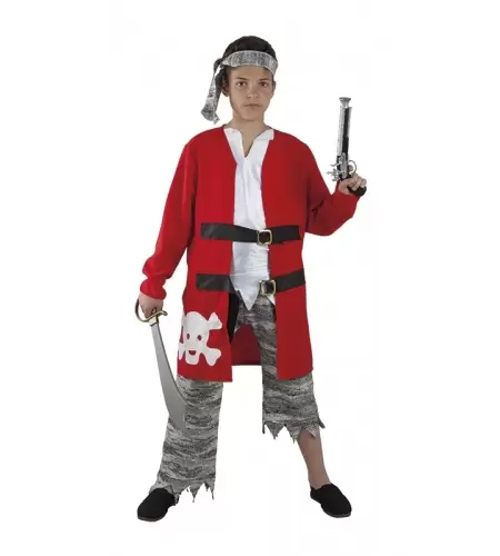 Disfraz pirata corsario niño que contiene chaqueta, pechero, pantalón y cinta.