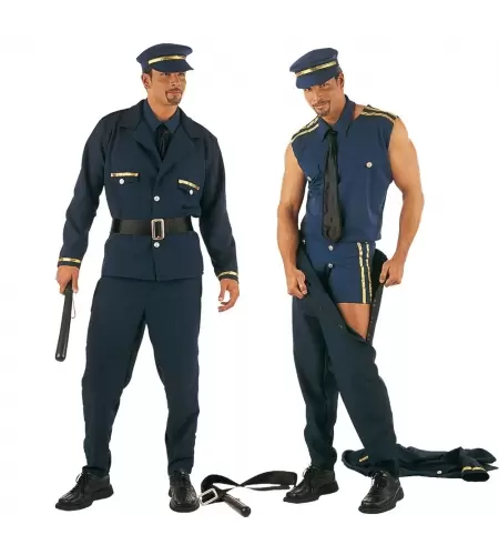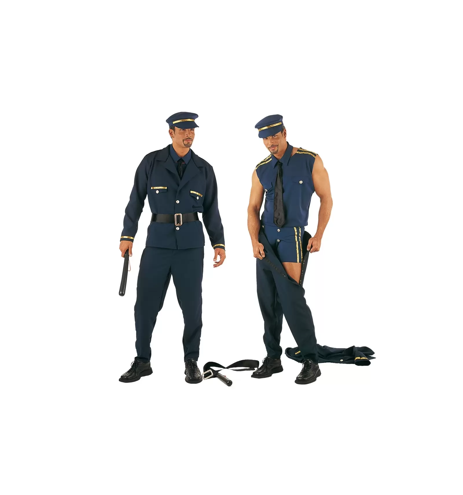 Sexy disfraz de policía sexy para hombre. sabes que los uniformes te sientan bien y a ellas les gusta. ¿disfraz completamente separable en piezas!!. incluye: chaqueta, pantalón, cinturón, short, cuello con corbata y gorra.