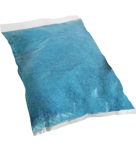 Purpurina brilhante em bolsas de 1 Kg., e em cores diversos: azul,ouro, vermelho, verde e fuchsia. As ordens de uso são o seguinte: cobre-se uma área com cola e despois é borrifado com purpurina.Quando a cola é seca, retira-se a purpurina em excesso.