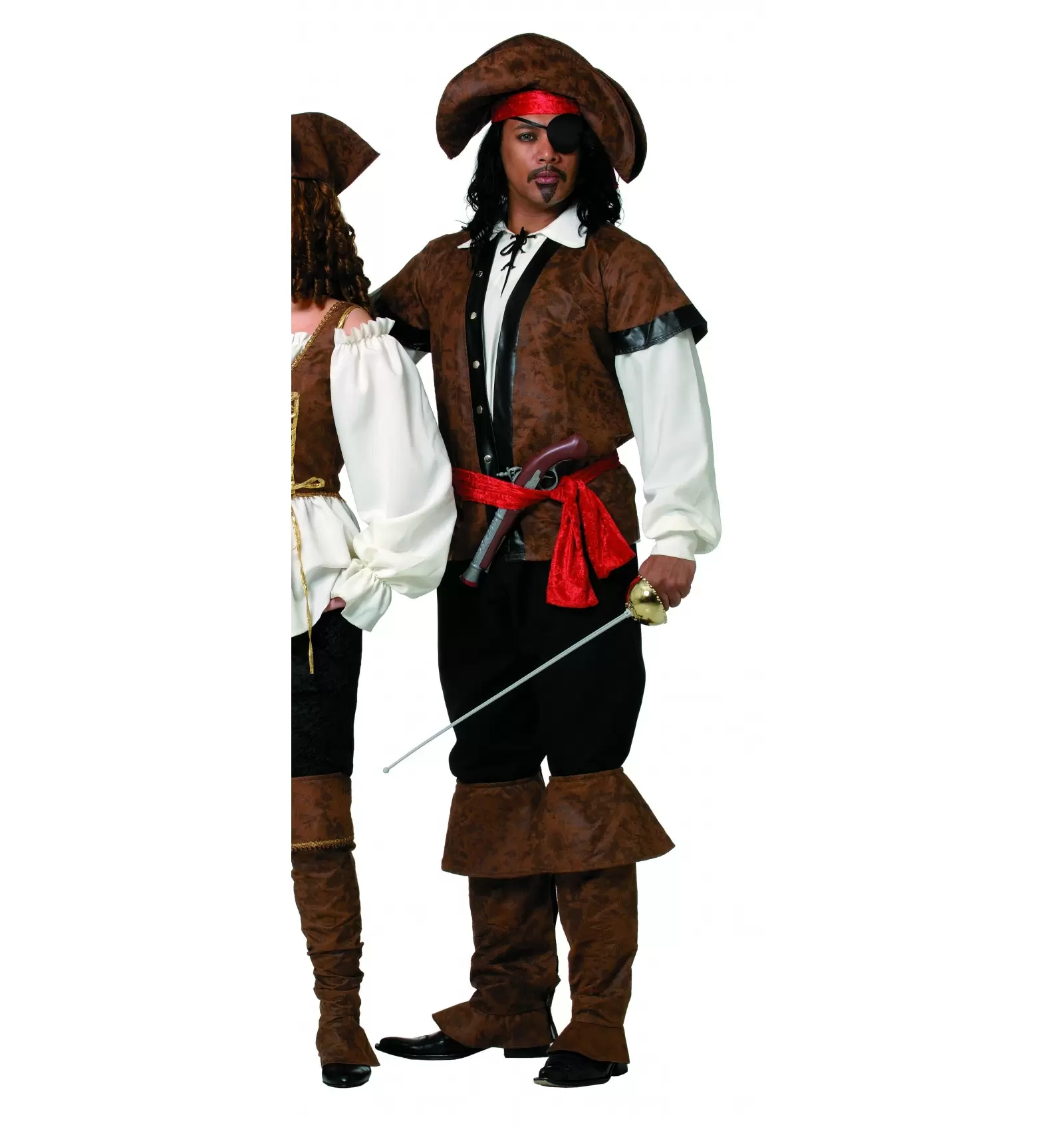 O PIRATE BUCCANEER TRAJE É FEITO NO TAMANHO 48. INCLUI CAMISAS, COLETES, CALÇAS, CHAPÉUS, CAPAS PARA BOTAS E CINTOS.