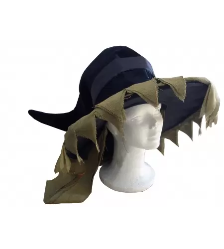 Chapéu de bruxa de luxo feito de tecidos de diferentes texturas. Um tamanho