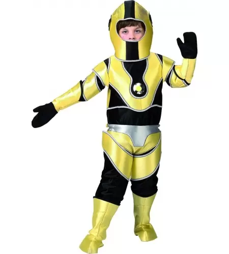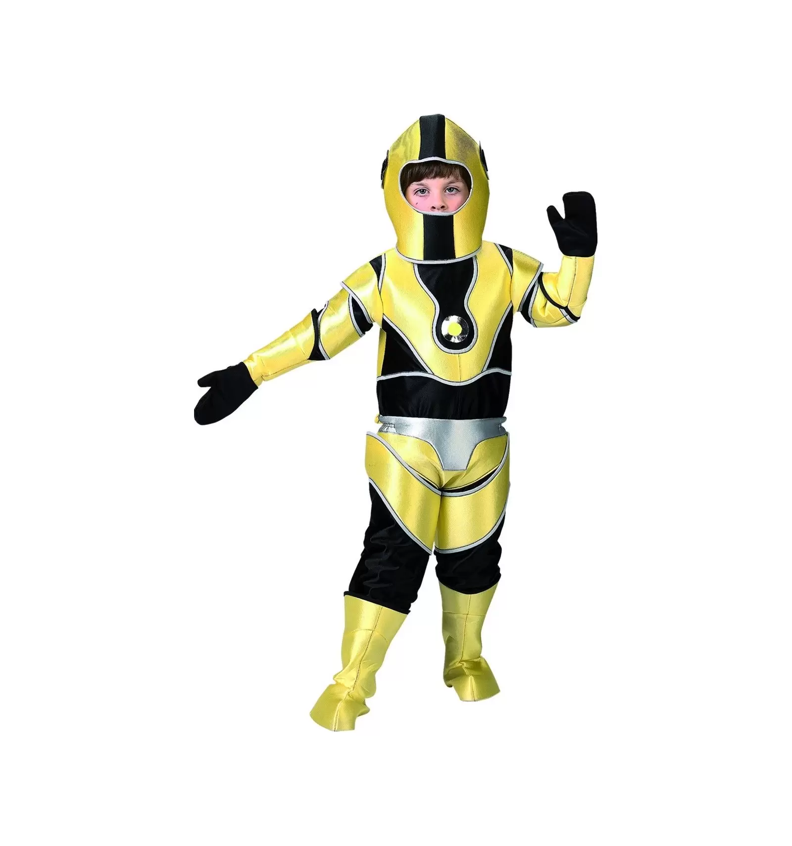 O TRAJE DE ROBÔ É FEITO DE TECIDO DE ESPUMA DE BORRACHA. MACACO INCLUSIVE, CAPAS PARA BOTAS E MERGULHO.